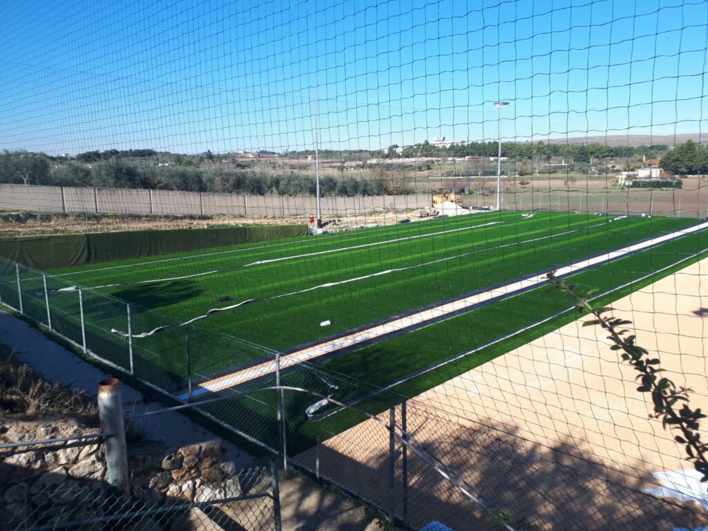 Per rendere il campo funzionale vengono realizzate recinzioni, impianto di irrigazione, impianto di illuminazione, spogliatoi e tribune.